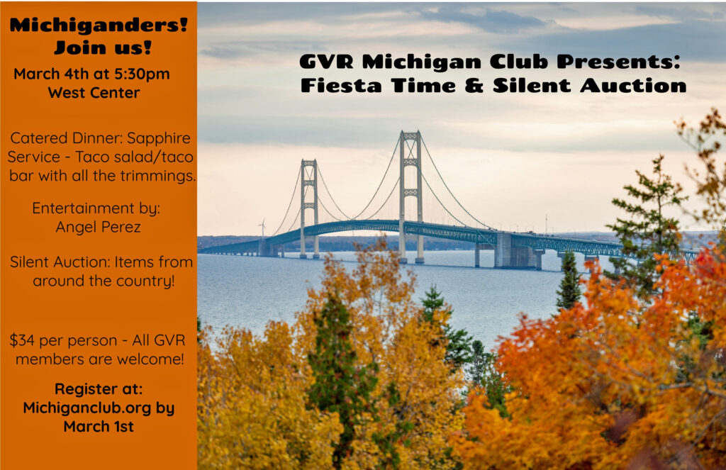 Service: Silent Auction – Wonderful items from around the country. This auction will help defray entertainment costs. If you have items, you would like to donate call, text, or e-mail Diane Watts. 616-581-0052 or diane@wattsgroupinc.com