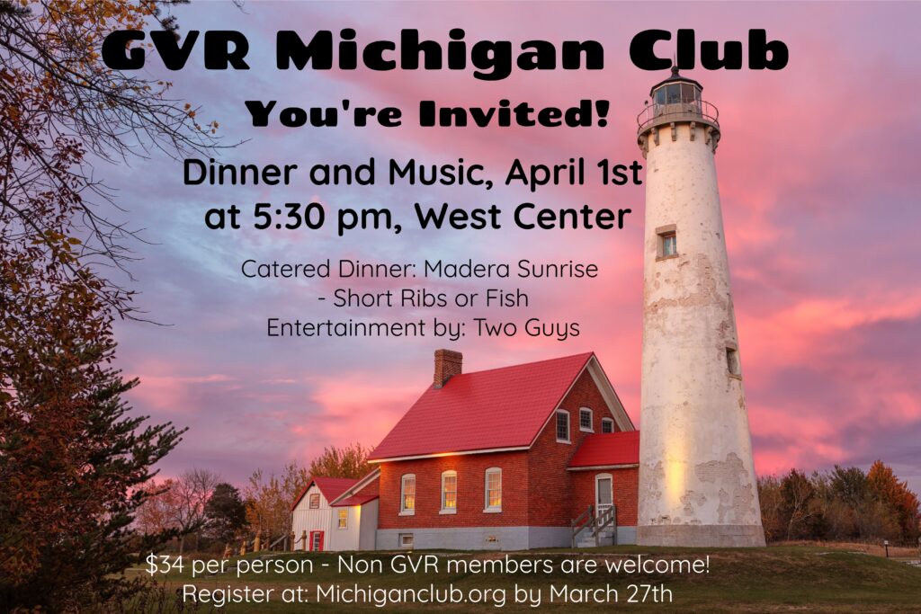 Get togethers are scheduled for the first Wednesday of the month December through April at the GVR WEST CENTER.
